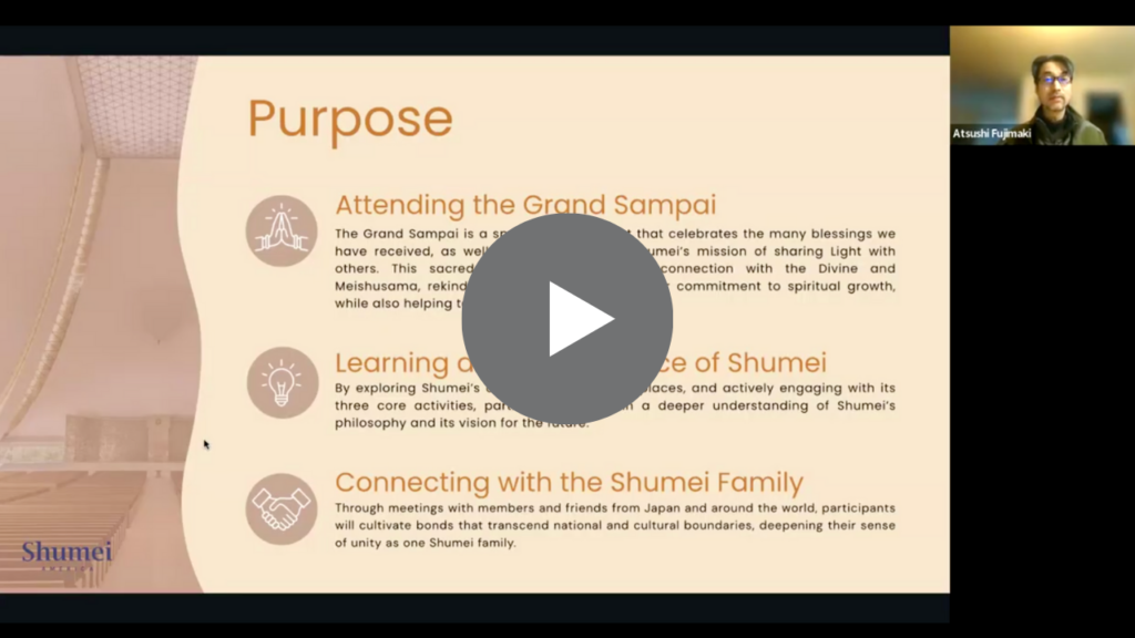 Discover the origin of Shumei and deepen your spirituality on the Grand Sampai Tour! Experience the sacred energy of Misono (the international headquarters of Shumei), explore the exquisite MIHO MUSEUM up in the Shigaraki Mountains, and visit Kishima Island surrounded by the inland sea of Japan. Join us for this transformative journey into Shumei’s roots.